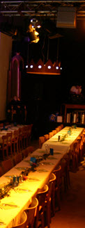 Mit den Architekt und Künstler Adreas Knitz Endstand im Hoftheater Baienfurt von Ulli Bötcher ein zum Raum und Werbelogo passende Leuchte im passenden Design. Diese ist in die DMX Anlage der Bühnentechnik eingebunden und kann über ein Mischpult ganz bequem gedimmt werden.